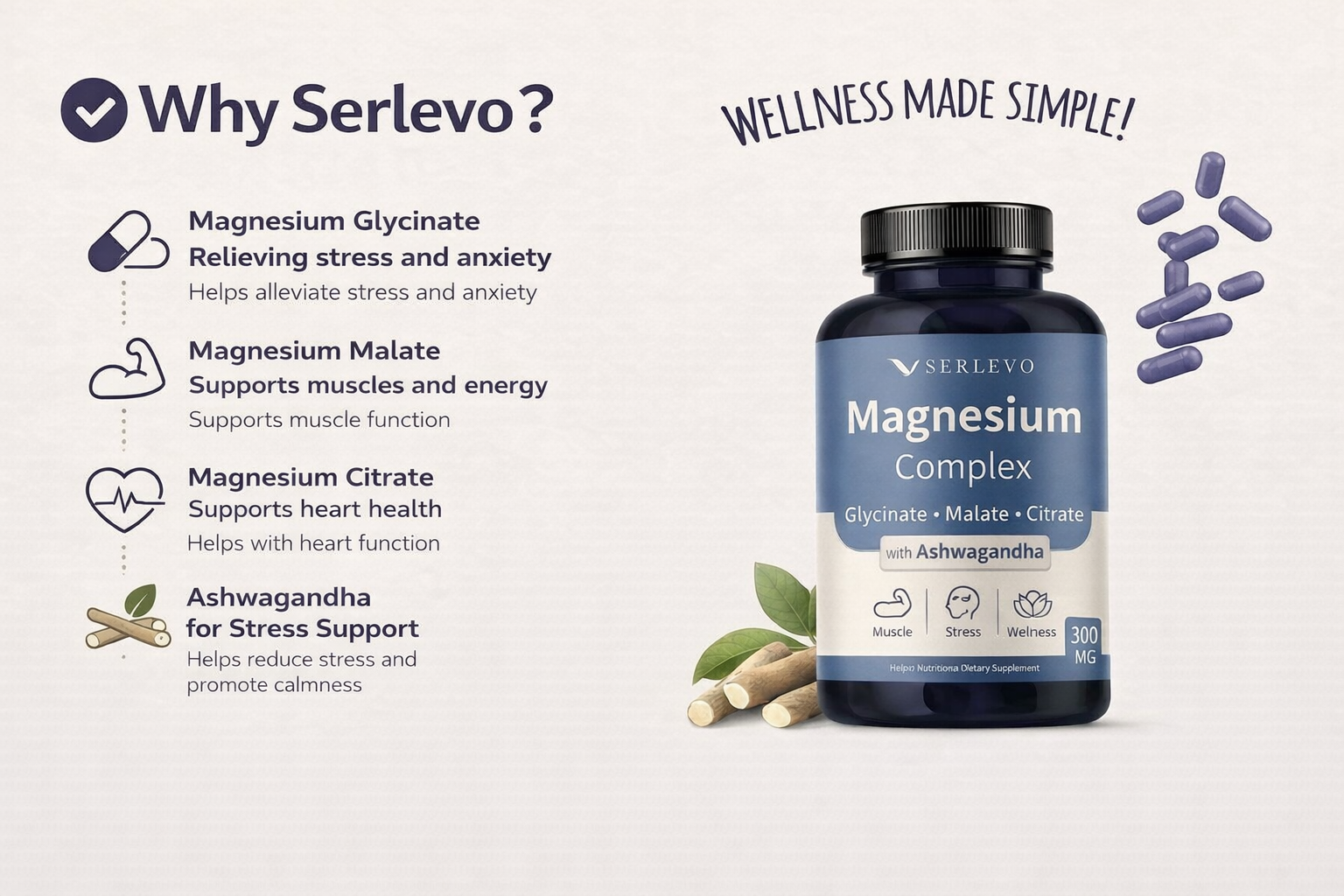 “I started taking Serlevo’s Magnesium Complex with Ashwagandha mainly for stress and sleep. Within a couple of weeks, I noticed I was falling asleep faster and waking up feeling more relaxed. My muscles feel less tense, and I don’t feel as overwhelmed at the end of the day.” -